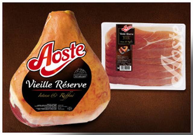L’histoire du jambon Aoste se confond avec celle du village éponyme Aoste (en Isère) et de la passion d’un homme, Roger Reybier, amateur de bonne cuisine française. Curieux de découvrir d’autres cuisines, il voyage en Europe. À Parme, il est séduit par le jambon cru qu’il veut absolument introduire dans le quotidien des Français. À cette époque, la production française de jambon cru est quasi inexistante et de faible qualité. Rentré en France, il lance sa première unité de production (en 1976) dans le village d’Aoste dans les monts du Bugey, qui bénéficie d’un climat tempéré idéal pour la maturation du jambon. Le défi est lancé… Très rapidement, le jambon Aoste devient une des premières références sur le marché et conquiert le grand public. S’appuyant sur ce succès initial et prometteur, la Marque multiplie les lancements de produits et les innovations. En quatre décennies, Aoste s’est imposé comme la marque référente du secteur en lançant des gammes en adéquation avec les attentes consommateurs : jambon cru avec un taux de sel réduit, chiffonnades, tapas… Les innovations et les mises sur le marché jalonnent le développement de la Marque qui s’exporte aussi avec brio à l’étranger à travers la gamme « Saveurs de France ». À la veille de ses 40 ans, Aoste a su croître et se développer de façon exponentielle tout en restant fidèle à la volonté fondamentale de son créateur : le respect du savoir-faire traditionnel.