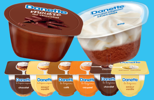 Première crème dessert du rayon frais, Danette doit d’abord sa réputation à sa recette unique : des saveurs et une texture inimitables. Composée d’au moins 70 % de lait et soigneusement élaborée dans les usines Danone pour lui conférer sa remarquable onctuosité, elle se décline aujourd’hui en 31 produits aux parfums les plus divers (des grands classiques chocolat et saveur vanille aux plus tendances, comme caramel salé et saveur petit-beurre) et en plusieurs formats pour varier les plaisirs (crème dessert classique ou à mélanger avec des billes soufflées), identifiables par des pots de couleurs différentes. Près d’un tiers de la production de Danette est consommé en France, où la Marque détient 53,5 % du marché des crèmes desserts (Nielsen, PDM valeur 2014), mais Danette est aussi présente dans une vingtaine de pays où elle s’adapte aux goûts et modes de consommation locaux en y développant des saveurs et textures spécifiques.
