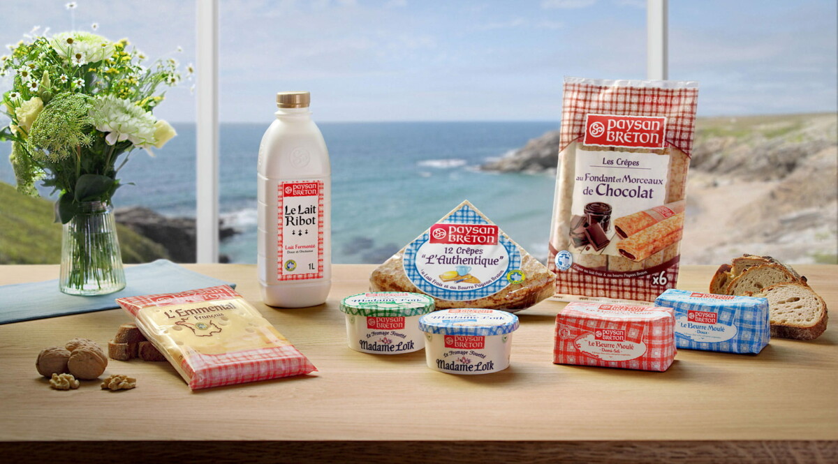 D’abord locale et centrée sur le beurre, Paysan Breton est devenue une marque transverse, vendue en France et à l’étranger. Elle offre désormais une large palette de produits : des Fromages Fouettés Madame Loïk aux Crêpes, en passant par le Lait Ribot, les Fromages de plateau et la Crème Fraîche. Et chaque année, la Marque innove pour renforcer sa gamme !