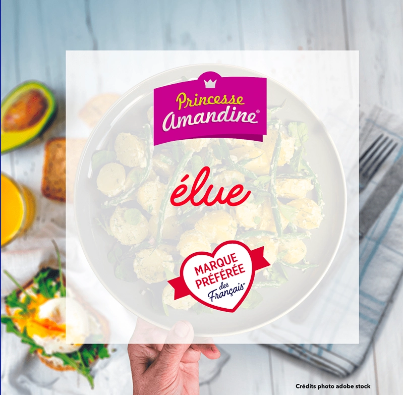 Au rayon fruits et légumes, impossible de rater sa couleur fushia qui la fait repérer du 1er coup d’œil ! Princesse Amandine© est aujourd’hui la variété et la marque de pomme de terre la plus vendue en France, avec 10% de parts de marché en volume. Elle a été élue « Marque Préférée des Français » dans la catégorie pommes de terre. C’est le 2nd fruit ou légume frais du rayon à recevoir cette distinction.