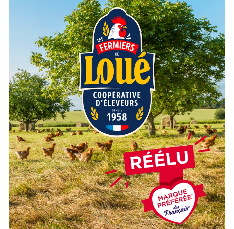 Les Fermiers de Loué, qui rassemble aujourd’hui 1 100 éleveurs, œuvrent depuis de nombreuses années pour offrir aux consommateurs des volailles et œufs de qualité, avec en ligne de mire le respect d’une agriculture familiale, du bien-être de l’animal et de l’environnement. L’histoire des Fermiers de Loué débute en 1958 à Loué, un petit village de la Sarthe, avec l’objectif de défendre le poulet fermier et ainsi un mode d’élevage unique : l’élevage en liberté. « La liberté, c’est la singularité de Loué ! Les volailles de nos éleveurs gambadent librement du matin au crépuscule en profitant en moyenne de 18 000 m2 de parcours arboré. Tout au long de la journée, elles peuvent laisser libre cours à leur comportement naturel : gratter, picorer, fouiller, courir et dormir ! », se réjouit Erwan de La Fouchardière. Un gage de bien-être animal qui s’affiche jusque sur les produits en magasin, grâce à la présence depuis 2019 de l’étiquette « Bien-être animal » sur les volailles et œufs de la marque. Des produits qui détiennent également depuis 1966 le Label Rouge, ainsi qu’une IGP* volailles du Maine depuis 1996, qui recouvre la Sarthe, la Mayenne, le nord du Maine-et-Loire, une partie de l’Indre-et-Loire et une partie de l’Orne.