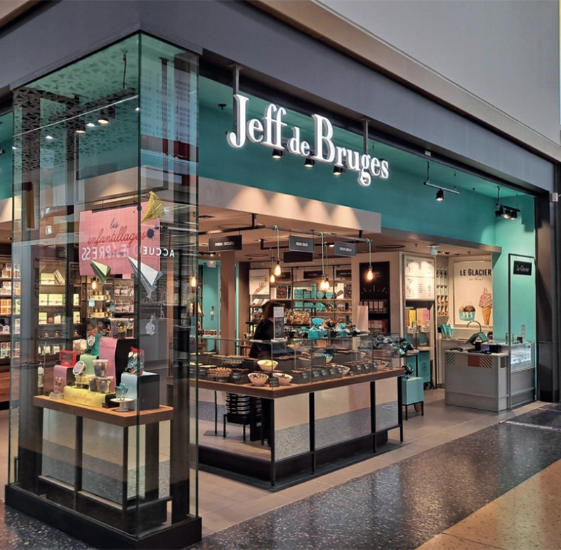 Jeff de Bruges est aujourd’hui un acteur de proximité, avec plus de 500 magasins, en centre-ville et en centre-commercial, principalement en France. Les boutiques physiques sont au cœur du lien que Jeff de Bruges entretient avec ses clients. Depuis 2020, la marque a étoffé sa présence de services digitaux, notamment avec le click and collect et la livraison par coursier.